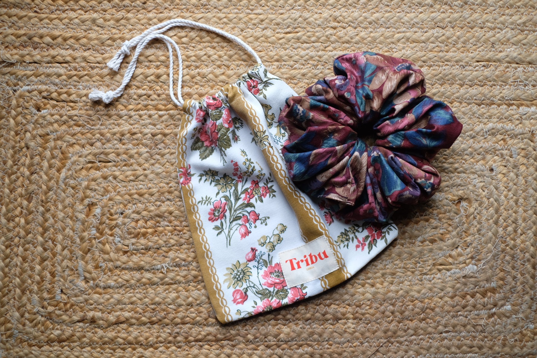 Made with old curtains. We were very careful but this is handmade by a human being with old fabrics, may have signs of wisdom (or little defects as some people like to call it).